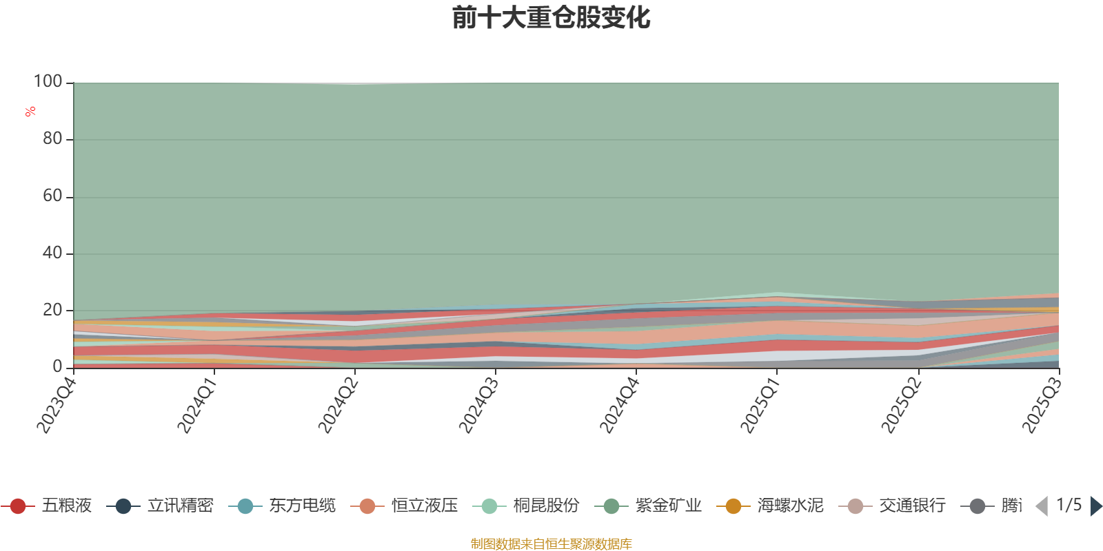 截至2025年三季度末,基金十大重仓股分别是宁德时代、中国平安、腾讯控股、紫金矿业、立讯精密、贵州茅台、东方电缆、恒立液压、恒瑞医药、江苏银行。