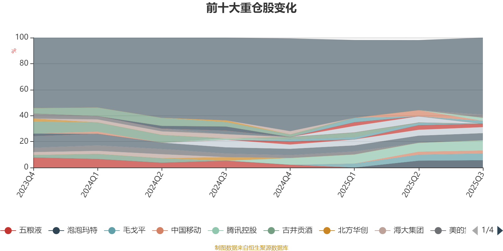 截至2025年三季度末,基金十大重仓股分别是腾讯控股、泡泡玛特、贵州茅台、毛戈平、宁德时代、老铺黄金、工业富联、晶合集成、阿里巴巴-W、中国移动。