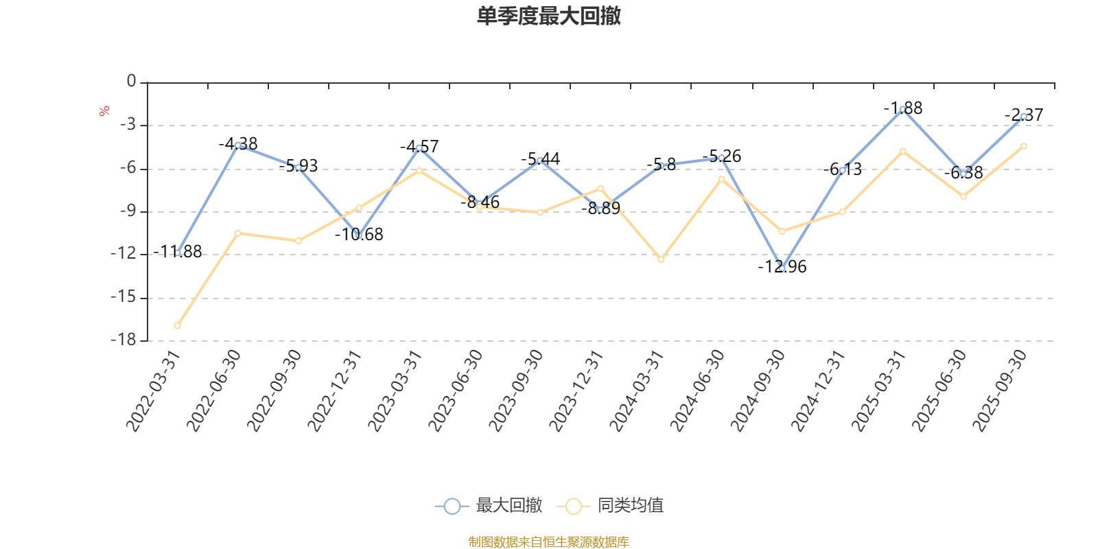 截至10月24日,基金近三年最大回撤为15.91%,同类可比基金排名13/119。单季度最大回撤出现在2024年三季度,为12.96%。