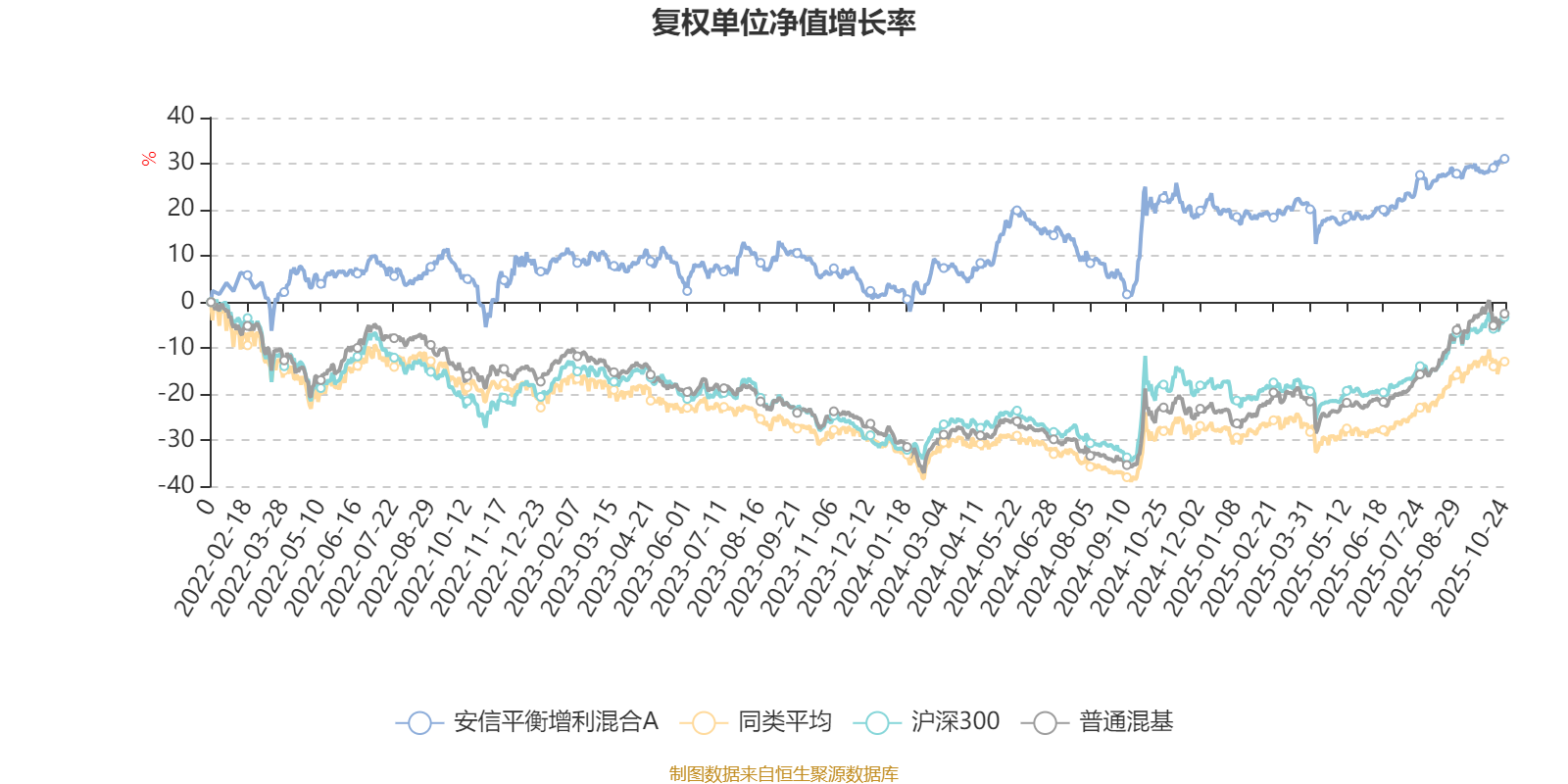 截至10月24日,安信平衡增利混合A近三个月复权单位净值增长率为2.76%,位于同类可比基金114/134;近半年复权单位净值增长率为10.86%,位于同类可比基金102/134;近一年复权单位净值增长率为7.48%,位于同类可比基金111/130;近三年复权单位净值增长率为31.01%,位于同类可比基金25/119。