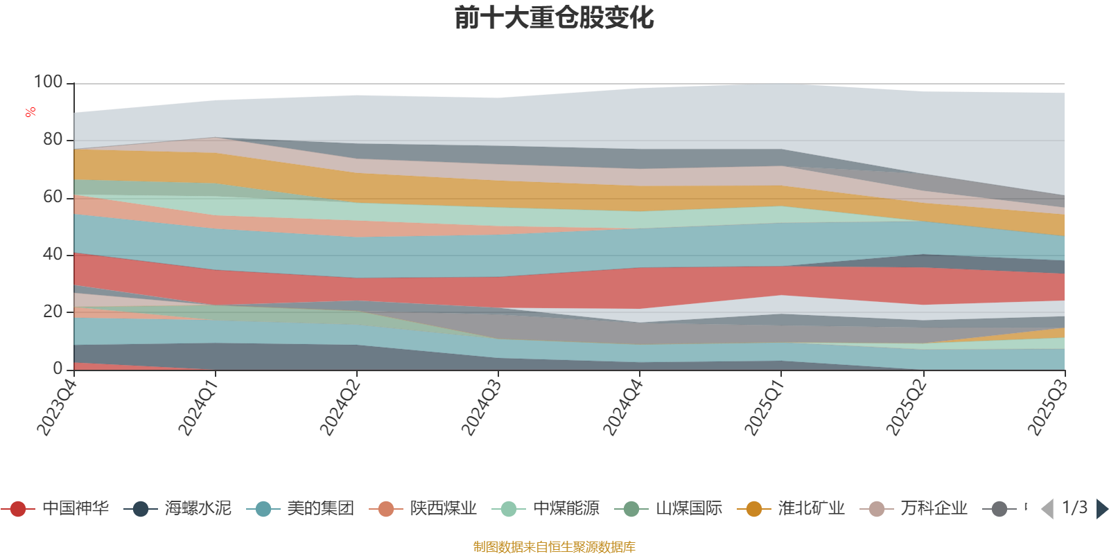 该基金持股集中度较高,近2年前十大重仓股集中度长期超过60%。截至2025年三季度末,基金重仓股分别是中国海洋石油、中国海外发展、宁波银行、美的集团、晋控煤业、海尔智家、华润置地、中国海油、中煤能源、淮北矿业、山西焦煤。