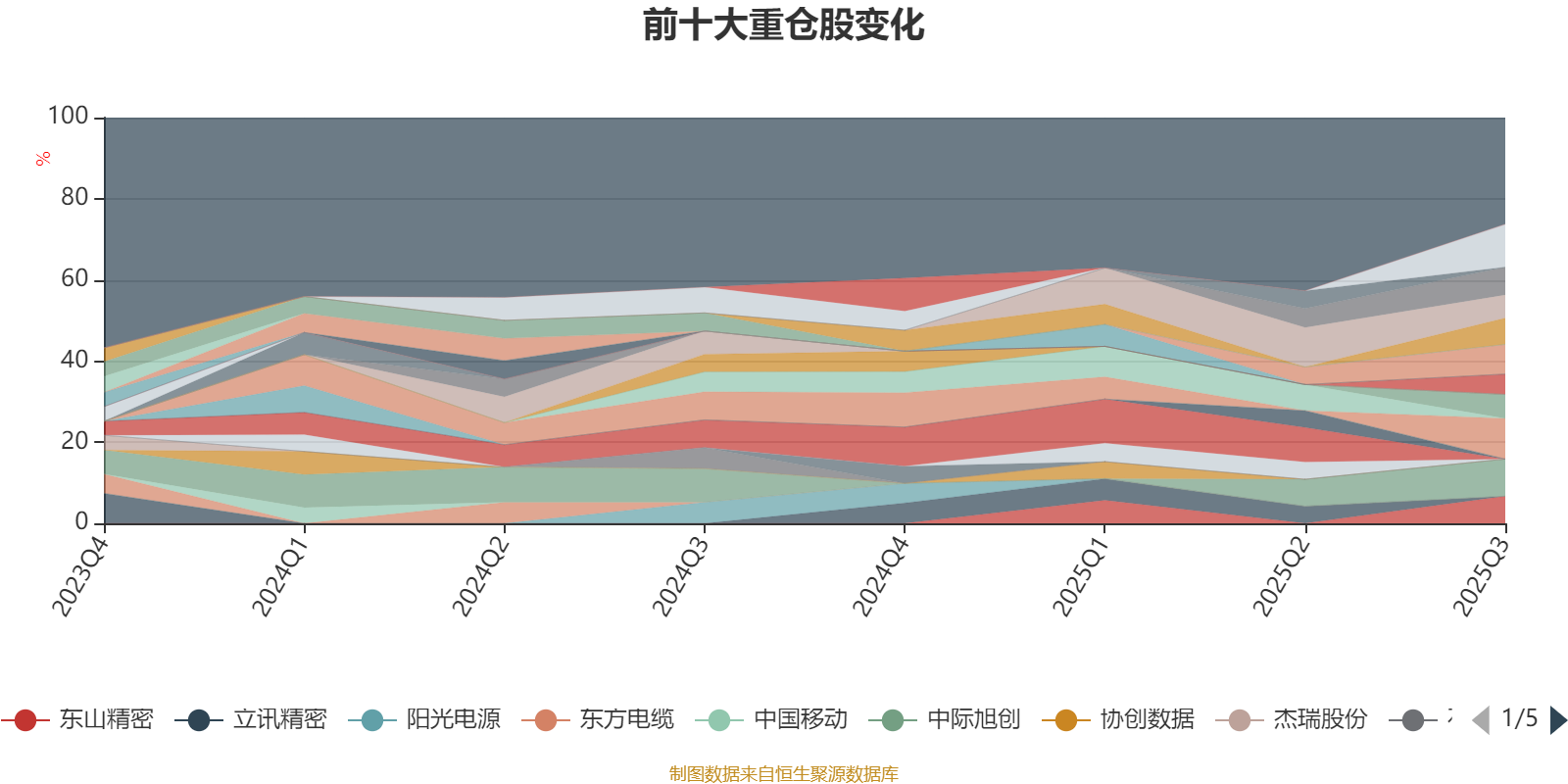 截至2025年三季度末,基金十大重仓股分别是新易盛、宁德时代、中际旭创、沪电股份、工业富联、东山精密、中科曙光、大金重工、胜宏科技、南网科技。