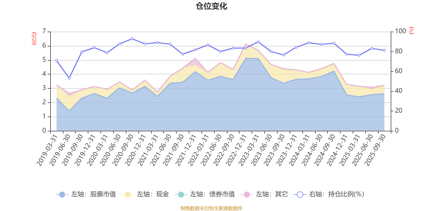 据定期报告数据统计,近三年平均股票仓位为83.03%,同类平均为72.16%。2020年三季度末基金达到92.8%的最高仓位,2019年上半年末最低,为53.14%。