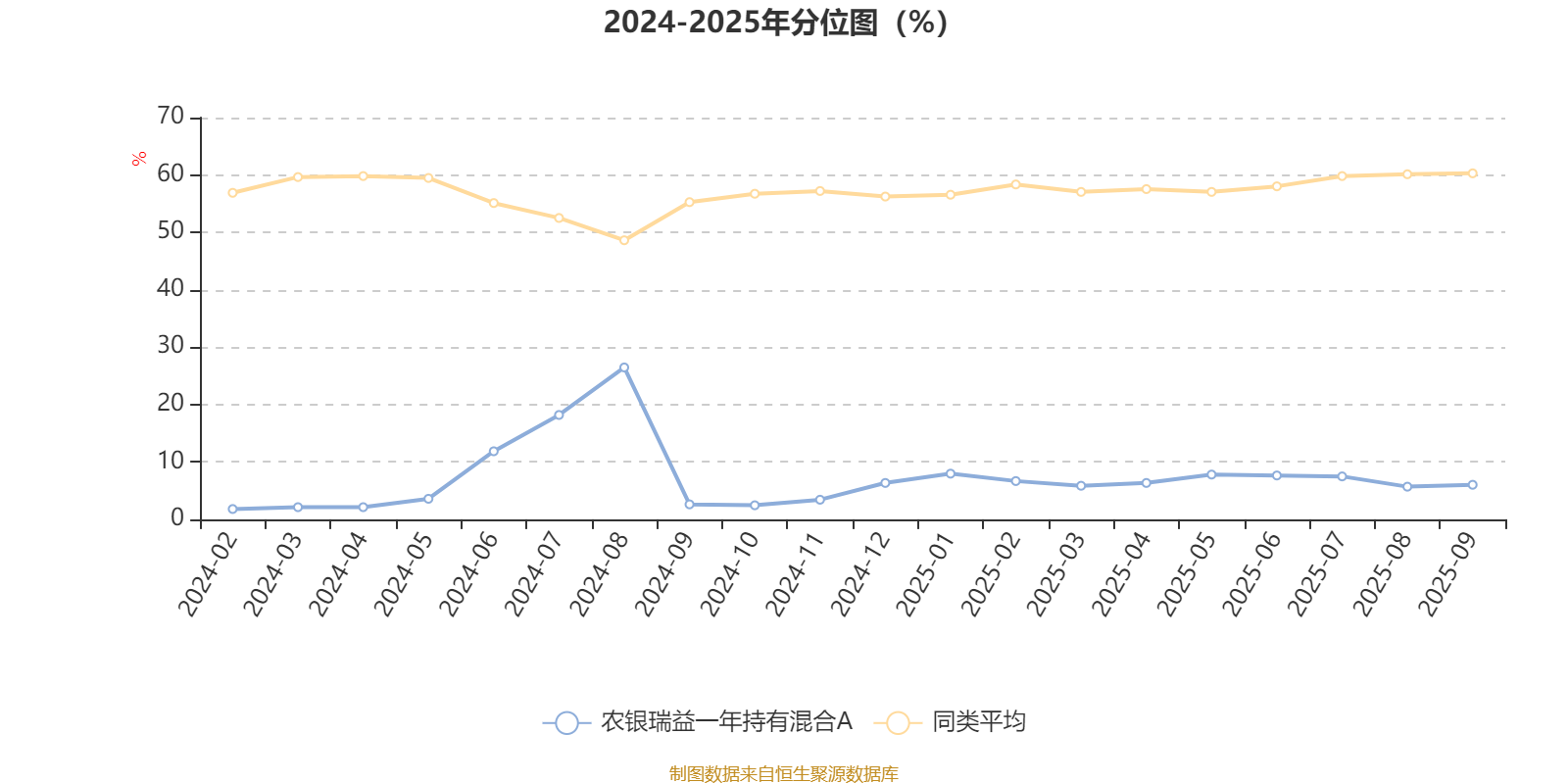 通过所选区间该基金净值增长率分位图,可以观察该基金与同类基金业绩比较情况。图为坐标原点到区间内某时点的净值增长率在同类基金中的分位数。