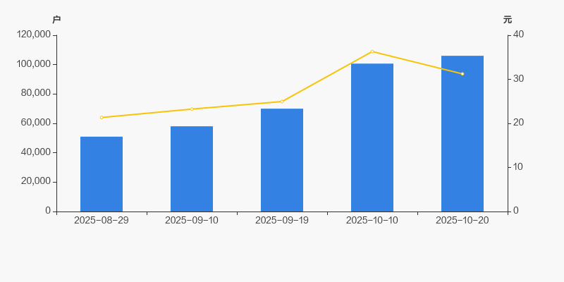 2025年8月29日至今,公司股东户数成倍增长,区间涨幅达108.09%。2025年8月29日至2025年10月20日区间股价上涨46.41%。