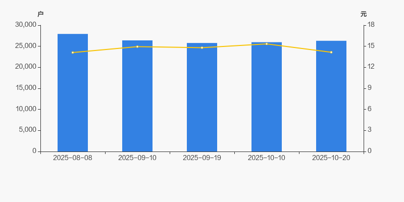 2025年8月8日至今,公司股东户数有所下降,区间跌幅为5.84%。2025年8月8日至2025年10月20日区间股价上涨0.28%。