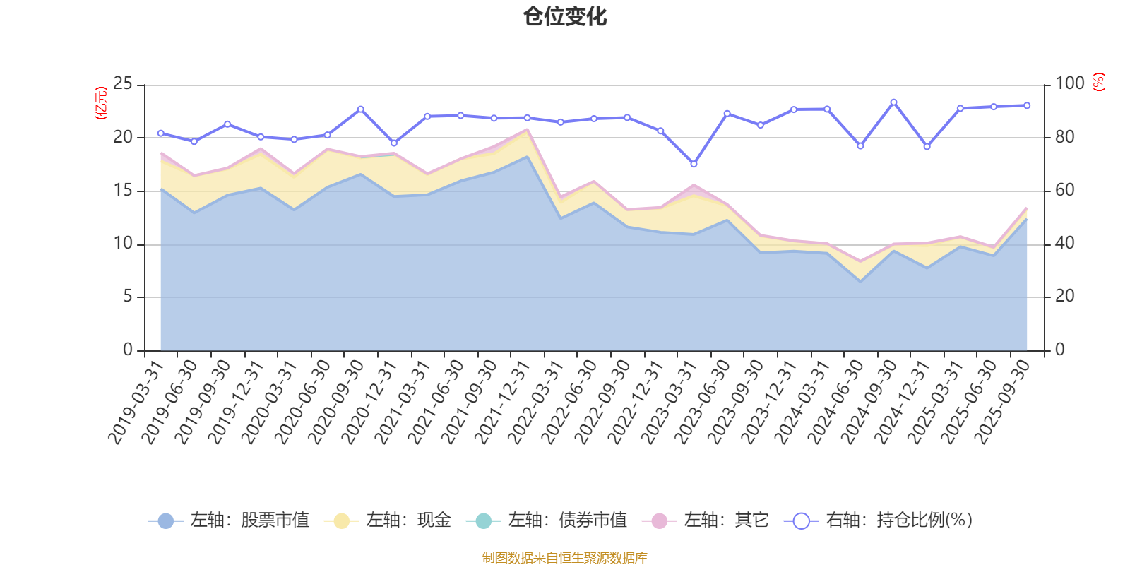 据定期报告数据统计,近三年平均股票仓位为85.89%,同类平均为85.91%。2024年三季度末基金达到93.44%的最高仓位,2023年一季度末最低,为70.2%。
