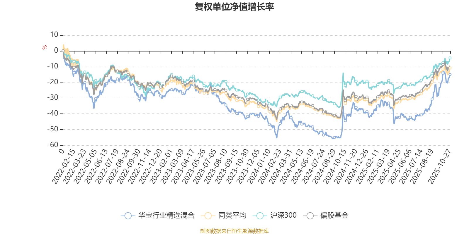 截至10月27日,华宝行业精选混合近三个月复权单位净值增长率为36.93%,位于同类可比基金24/265;近半年复权单位净值增长率为47.36%,位于同类可比基金45/265;近一年复权单位净值增长率为42.17%,位于同类可比基金57/265;近三年复权单位净值增长率为20.74%,位于同类可比基金120/253。