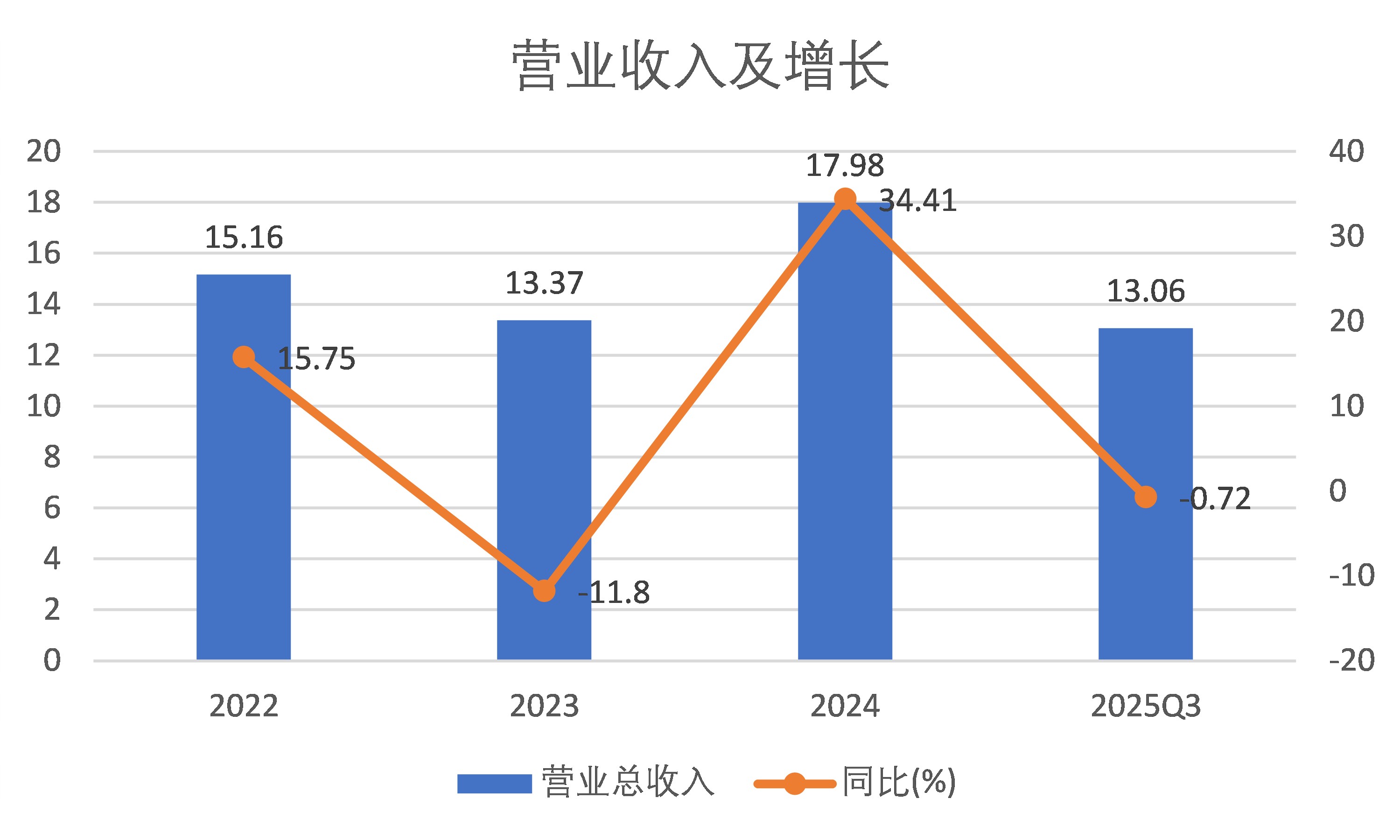 海外依赖症2025年10月26日晚间,依依股份披露的三季报数据,首次清晰暴露了公司长期依赖海外市场的业务模式所暗藏的风险——尽管前三季度营业总收入录得13.06亿元,仅同比微降0.72%,但单三季度营收同比大幅下滑16.98%,经营端下行压力较上半年显著加大。