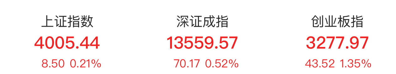 上证报中国证券网讯 10月28日,A股市场早盘低开高走,沪指时隔十年再度站上4000点关口。截至午间收盘,沪指涨0.21%,深成指涨0.52%,创业板指涨1.35%。全市场超3000只个股上涨。