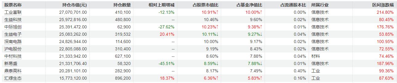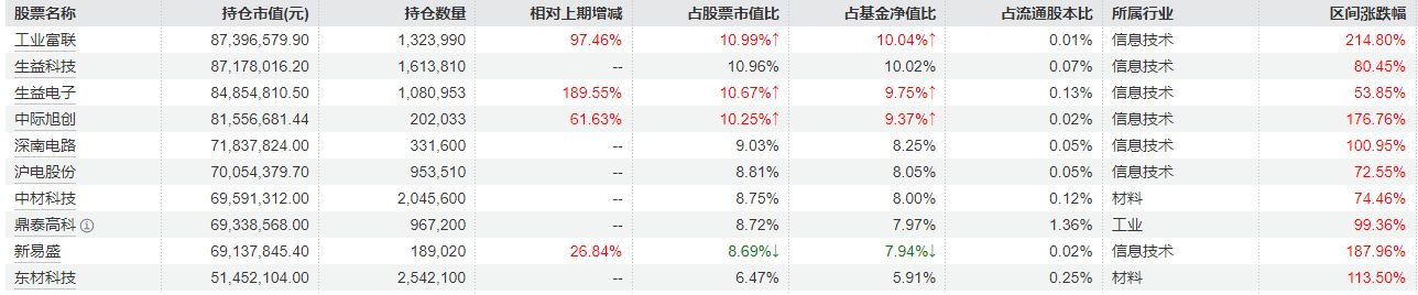 金梓才管理的财通集成电路产业A以86.49%的季度净值增长率录得三季度普通股票型基金业绩冠军。该基金重仓股调整明显,工业富联、生益电子、中际旭创、新易盛均较二季度加仓。Wind数据显示,生益电子持仓环比提升了189.55%。