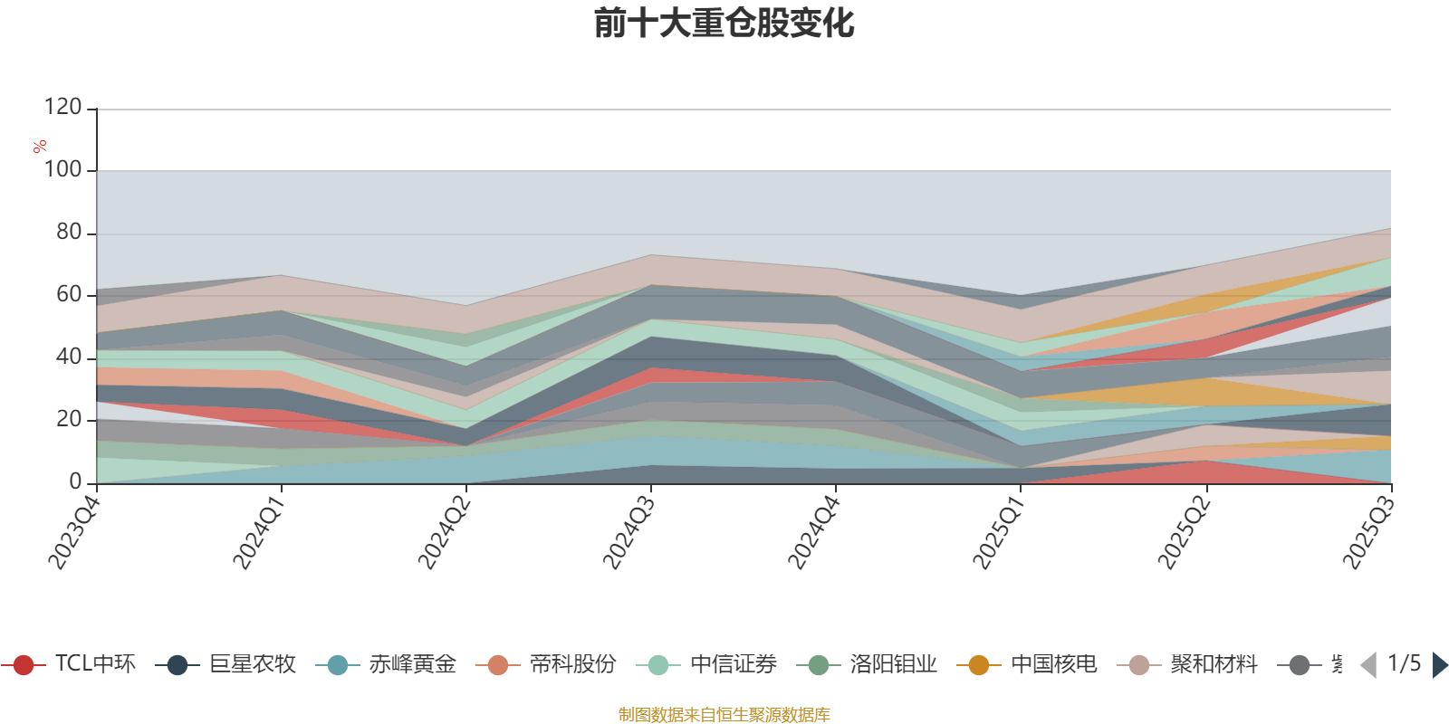 该基金持股集中度较高。截至2025年三季度末,基金十大重仓股分别是湖南黄金、赤峰黄金、神火股份、中国铝业、云铝股份、山东黄金、山金国际、中国核电、东方证券、杭州银行。