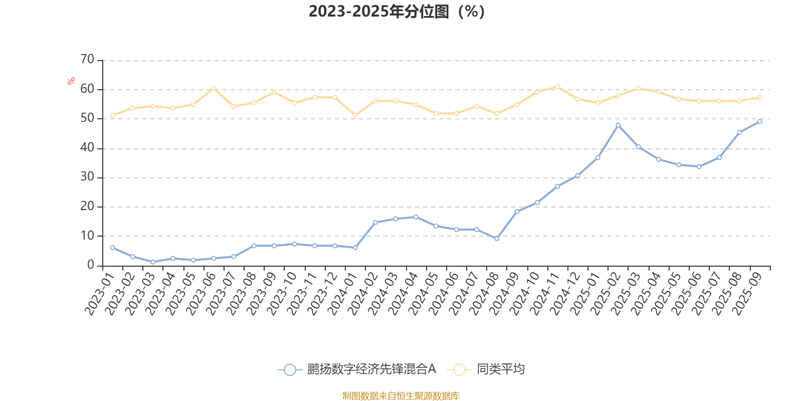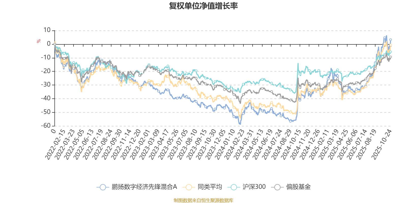 截至10月24日,鹏扬数字经济先锋混合A近三个月复权单位净值增长率为40.29%,位于同类可比基金89/229;近半年复权单位净值增长率为58.81%,位于同类可比基金91/229;近一年复权单位净值增长率为65.72%,位于同类可比基金57/213;近三年复权单位净值增长率为36.48%,位于同类可比基金88/158。