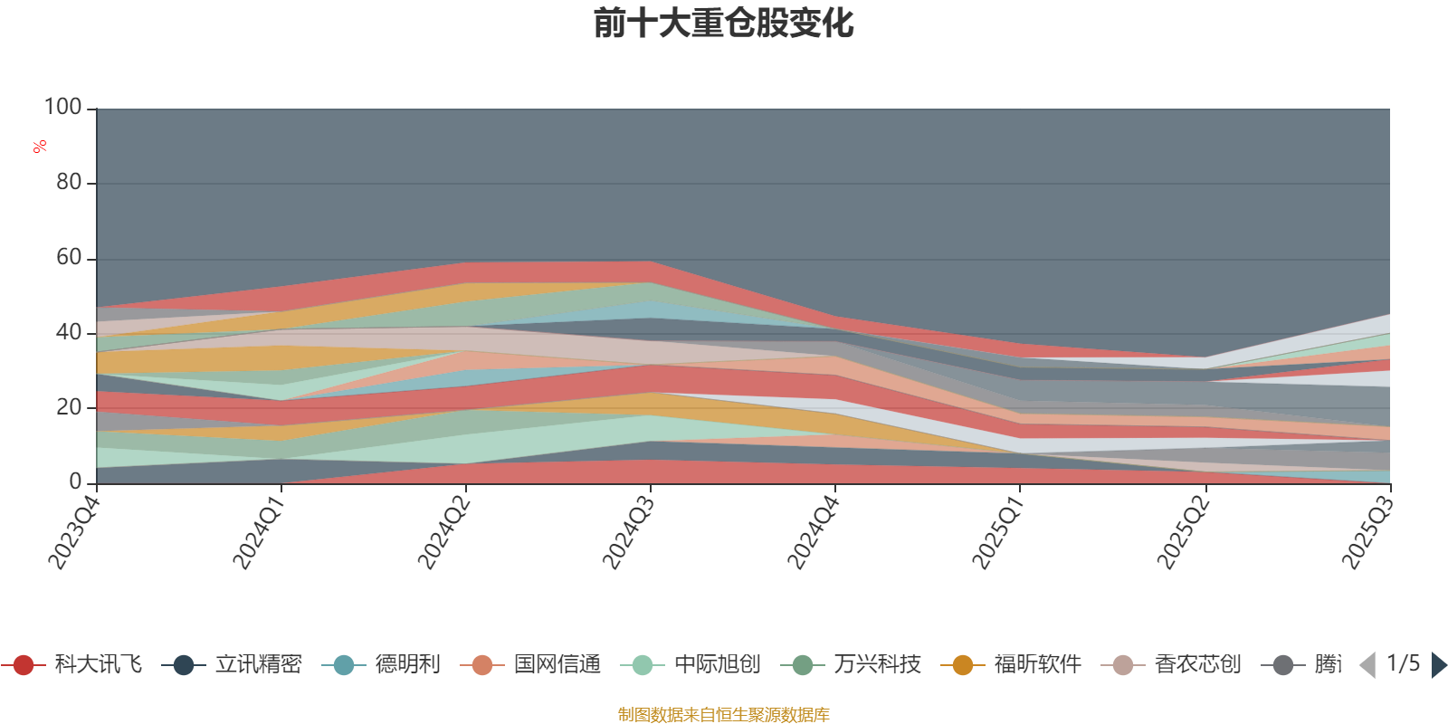 截至2025年三季度末,基金十大重仓股分别是中芯国际、兆易创新、腾讯控股、歌尔股份、阿里巴巴-W、寒武纪、德明利、思泉新材、工业富联、沪电股份。