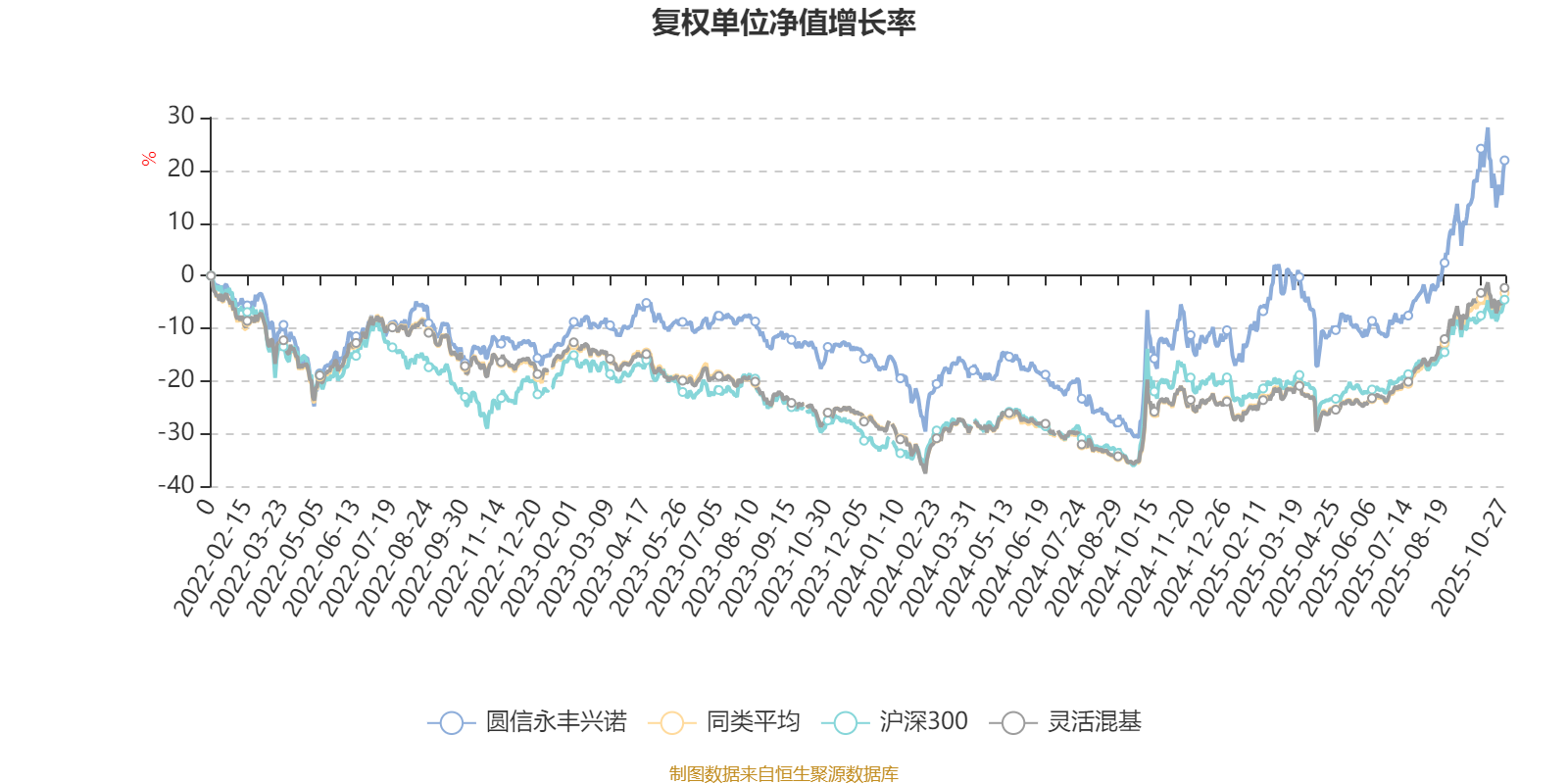 截至10月27日,圆信永丰兴诺近三个月复权单位净值增长率为25.88%,位于同类可比基金258/1287;近半年复权单位净值增长率为35.90%,位于同类可比基金362/1287;近一年复权单位净值增长率为38.44%,位于同类可比基金278/1287;近三年复权单位净值增长率为41.05%,位于同类可比基金197/1286。
