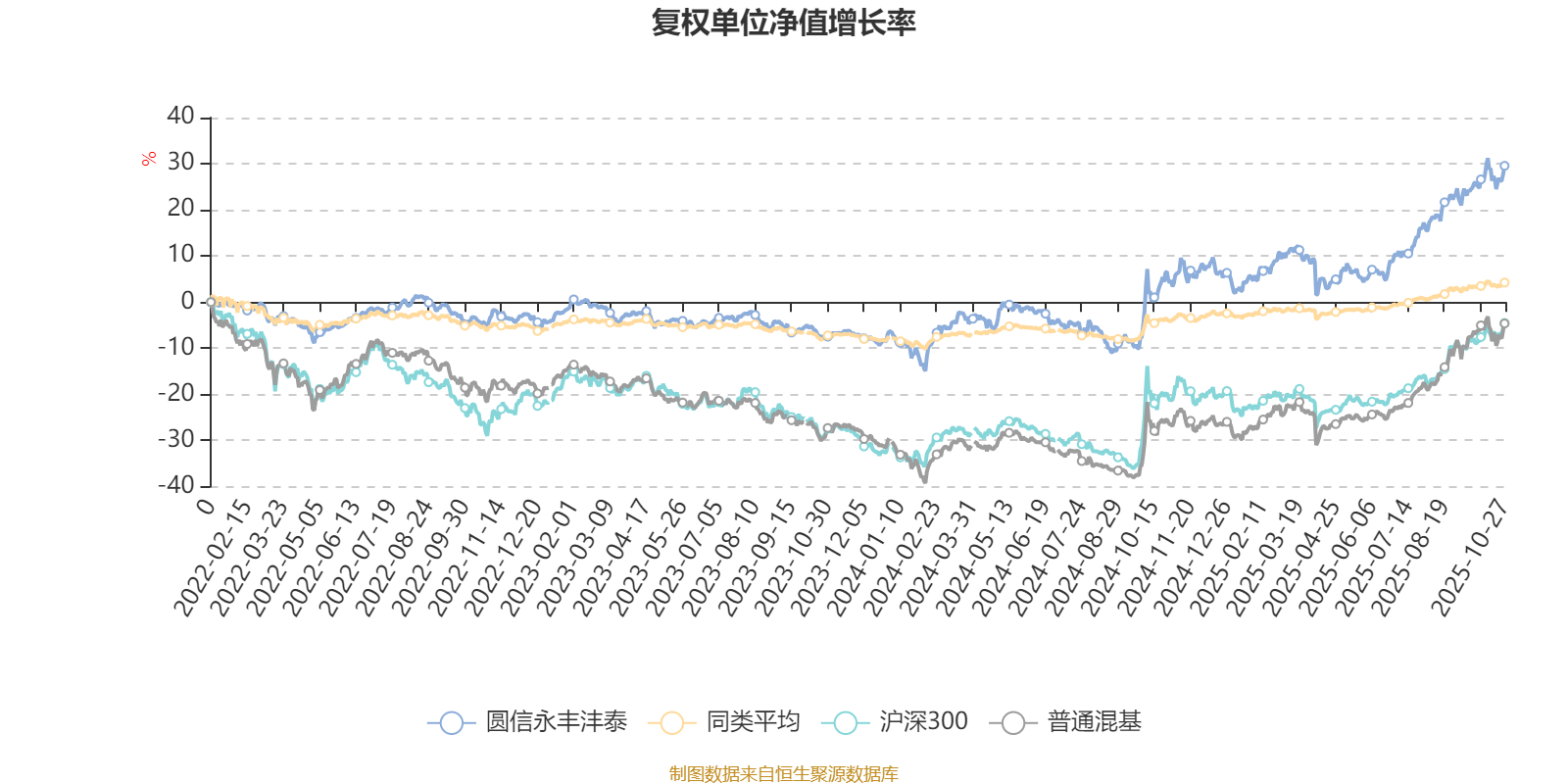 截至10月27日,圆信永丰沣泰近三个月复权单位净值增长率为11.65%,位于同类可比基金13/629;近半年复权单位净值增长率为23.45%,位于同类可比基金6/629;近一年复权单位净值增长率为21.80%,位于同类可比基金17/623;近三年复权单位净值增长率为35.63%,位于同类可比基金9/557。