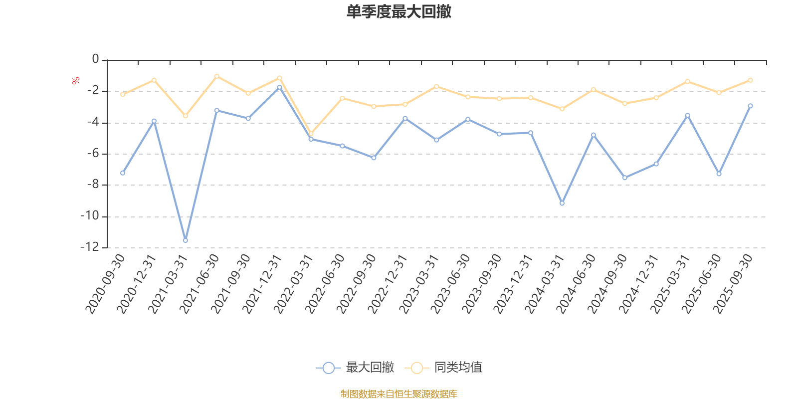通过所选区间该基金净值增长率分位图,可以观察该基金与同类基金业绩比较情况。图为坐标原点到区间内某时点的净值增长率在同类基金中的分位数。