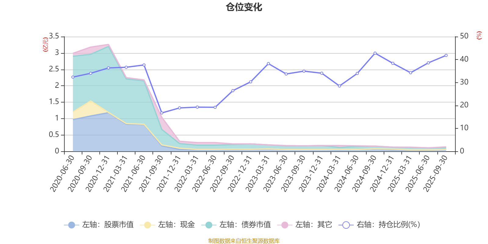 据定期报告数据统计,近三年平均股票仓位为35.8%,同类平均为19.14%。2024年三季度末基金达到42.8%的最高仓位,2021年三季度末最低,为16.77%。