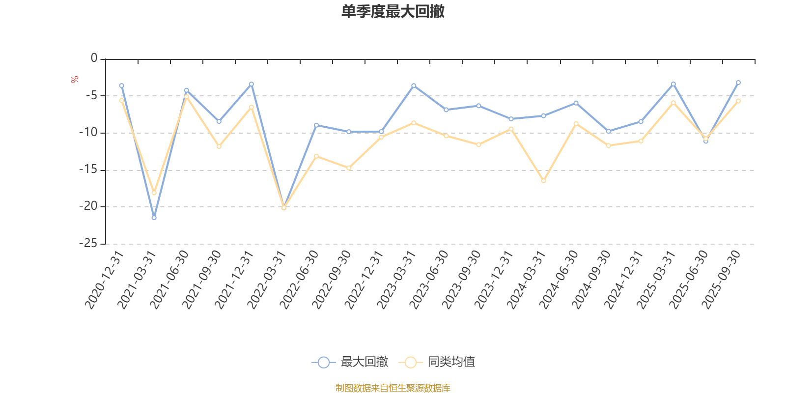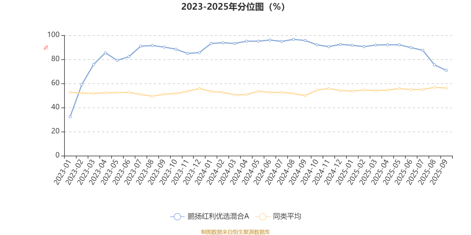 通过所选区间该基金净值增长率分位图,可以观察该基金与同类基金业绩比较情况。图为坐标原点到区间内某时点的净值增长率在同类基金中的分位数。