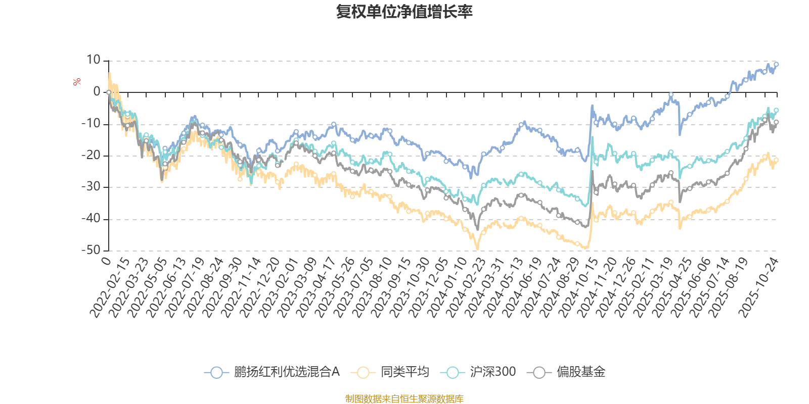 截至10月24日,鹏扬红利优选混合A近三个月复权单位净值增长率为4.98%,位于同类可比基金512/621;近半年复权单位净值增长率为16.95%,位于同类可比基金490/618;近一年复权单位净值增长率为19.17%,位于同类可比基金431/611;近三年复权单位净值增长率为37.49%,位于同类可比基金113/518。