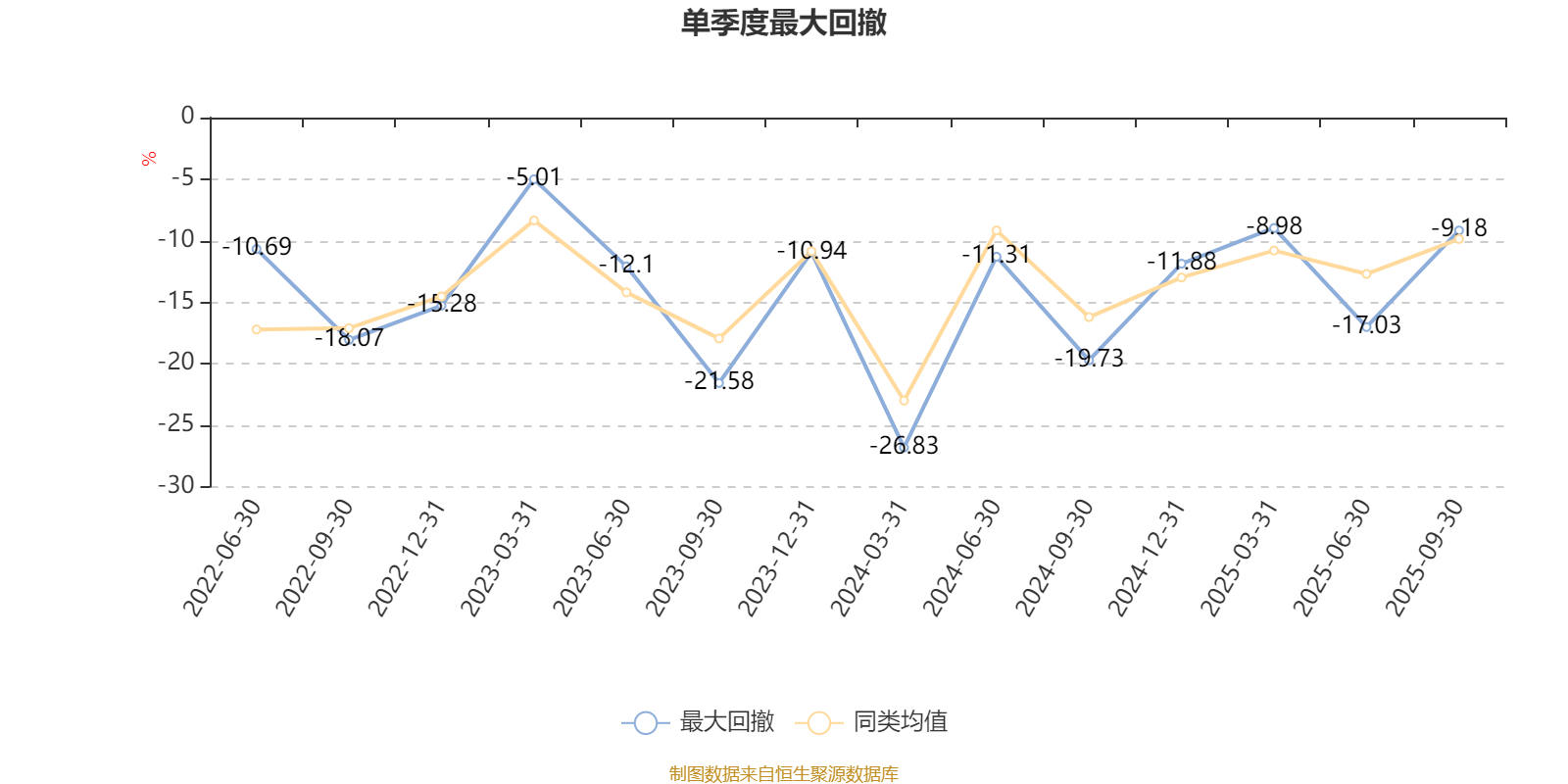 截至10月27日,基金近三年最大回撤为47.16%,同类可比基金排名109/159。单季度最大回撤出现在2024年一季度,为26.83%。