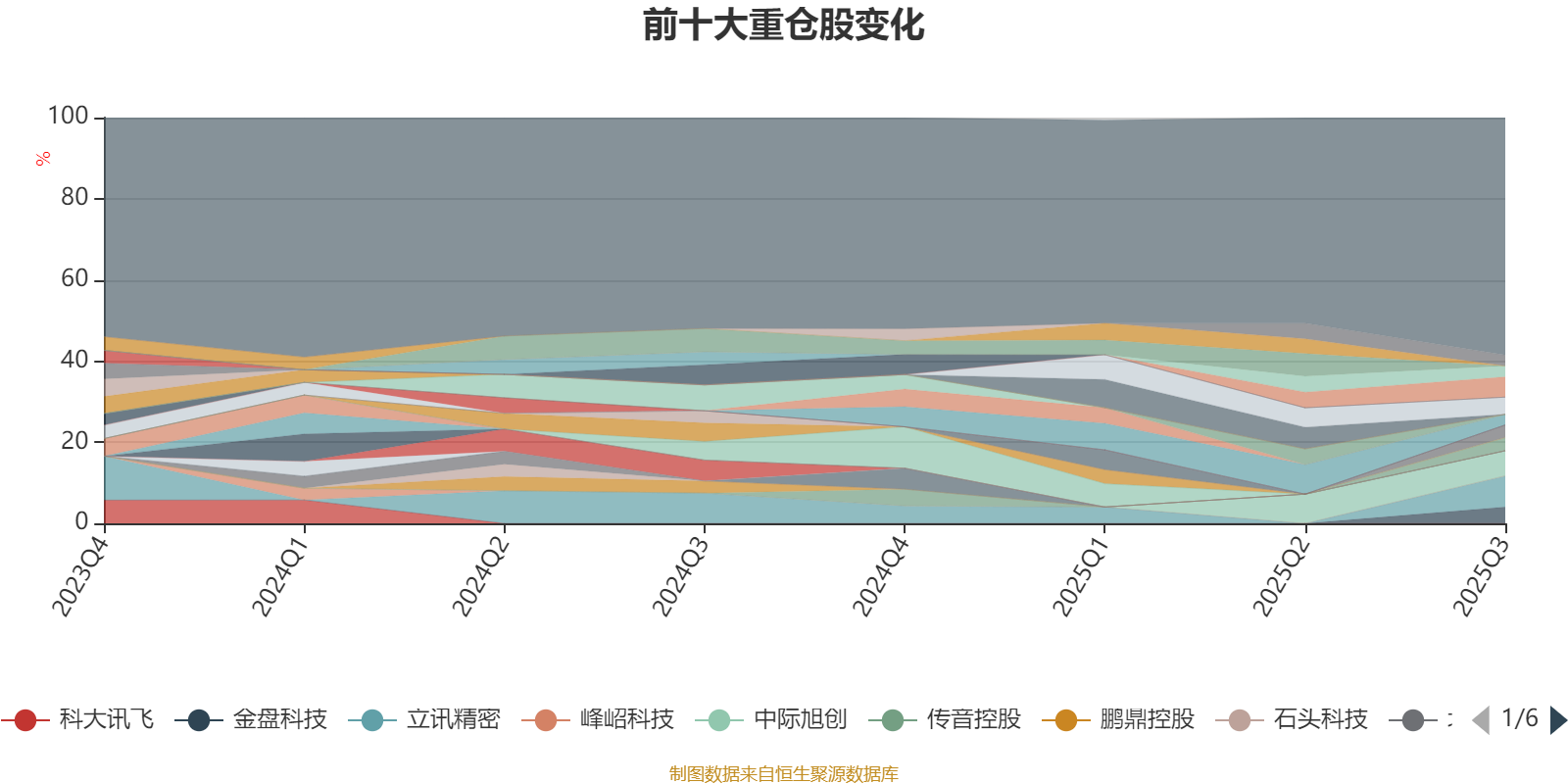 截至2025年三季度末,基金十大重仓股分别是立讯精密、中际旭创、新易盛、阿里巴巴-W、金盘科技、通富微电、深科技、中科金财、华丰科技、小米集团-W。