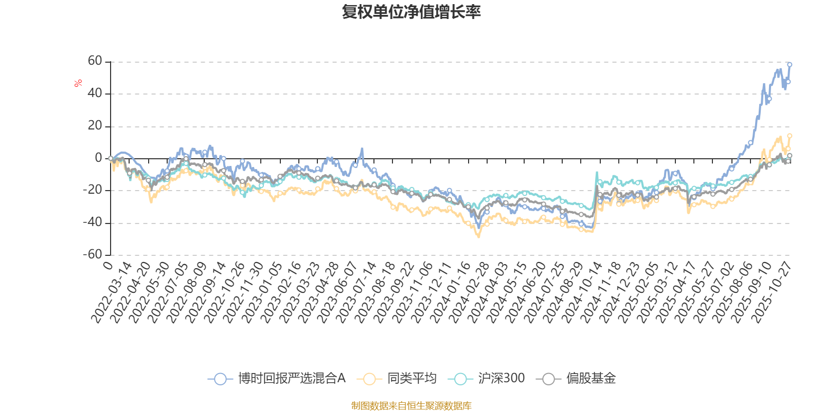 截至10月27日,博时回报严选混合A近三个月复权单位净值增长率为51.08%,位于同类可比基金53/229;近半年复权单位净值增长率为100.46%,位于同类可比基金24/229;近一年复权单位净值增长率为108.79%,位于同类可比基金10/213;近三年复权单位净值增长率为67.00%,位于同类可比基金49/158。