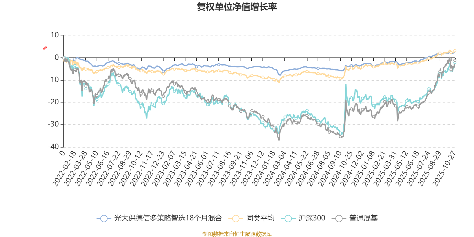 截至10月24日,光大保德信多策略智选18个月混合近三个月复权单位净值增长率为2.52%,位于同类可比基金318/629;近半年复权单位净值增长率为5.54%,位于同类可比基金311/629;近一年复权单位净值增长率为6.51%,位于同类可比基金361/623;近三年复权单位净值增长率为7.14%,位于同类可比基金419/557。