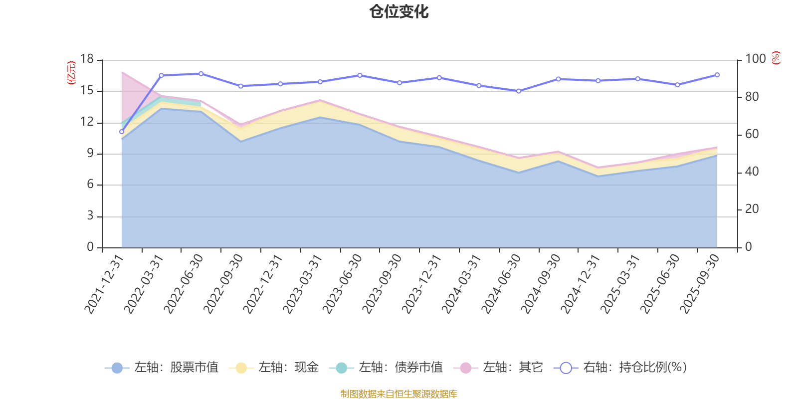 据定期报告数据统计,近三年平均股票仓位为88.55%,同类平均为86.94%。2022年上半年末基金达到92.64%的最高仓位,2021年末最低,为61.75%。