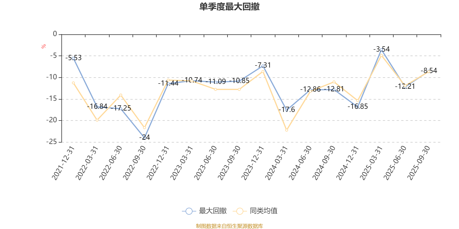 截至10月27日,基金近三年最大回撤为34.34%,同类可比基金排名14/75。单季度最大回撤出现在2022年三季度,为24%。