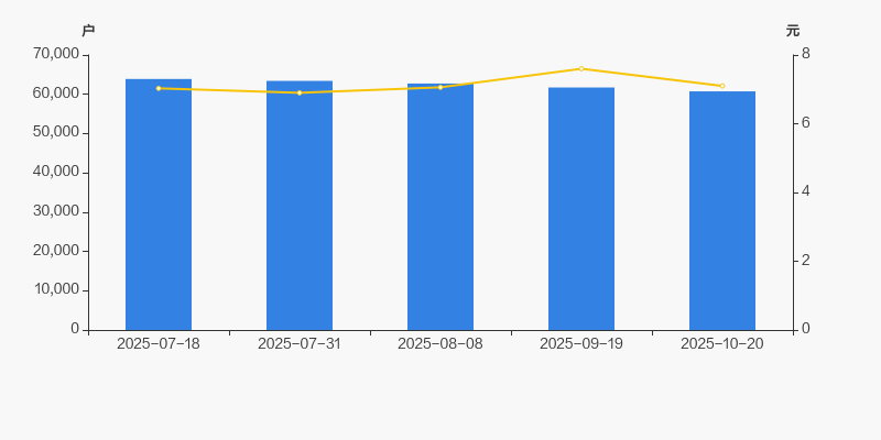 截至2025年10月20日,公司最新总股本为6.46亿股,其中流通股本为5.35亿股。户均持有流通股数量由上期的8665股上升至8805股,户均流通市值6.25万元。