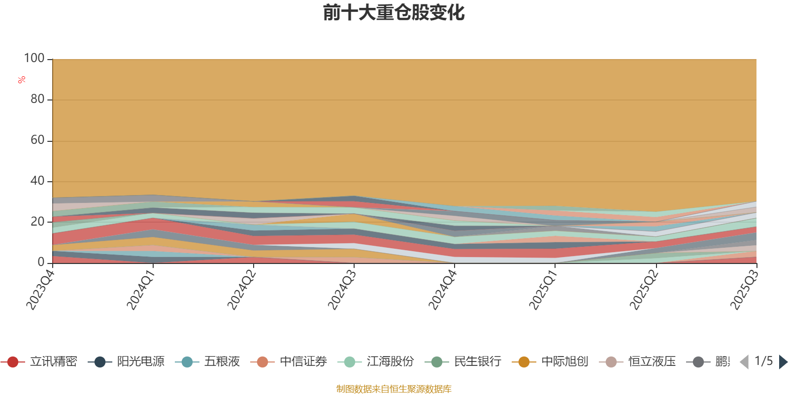 截至2025年三季度末,基金十大重仓股分别是宁德时代、紫金矿业、立讯精密、中信证券、恒立液压、贵州茅台、鼎通科技、中国人保、三花智控、鹏鼎控股。