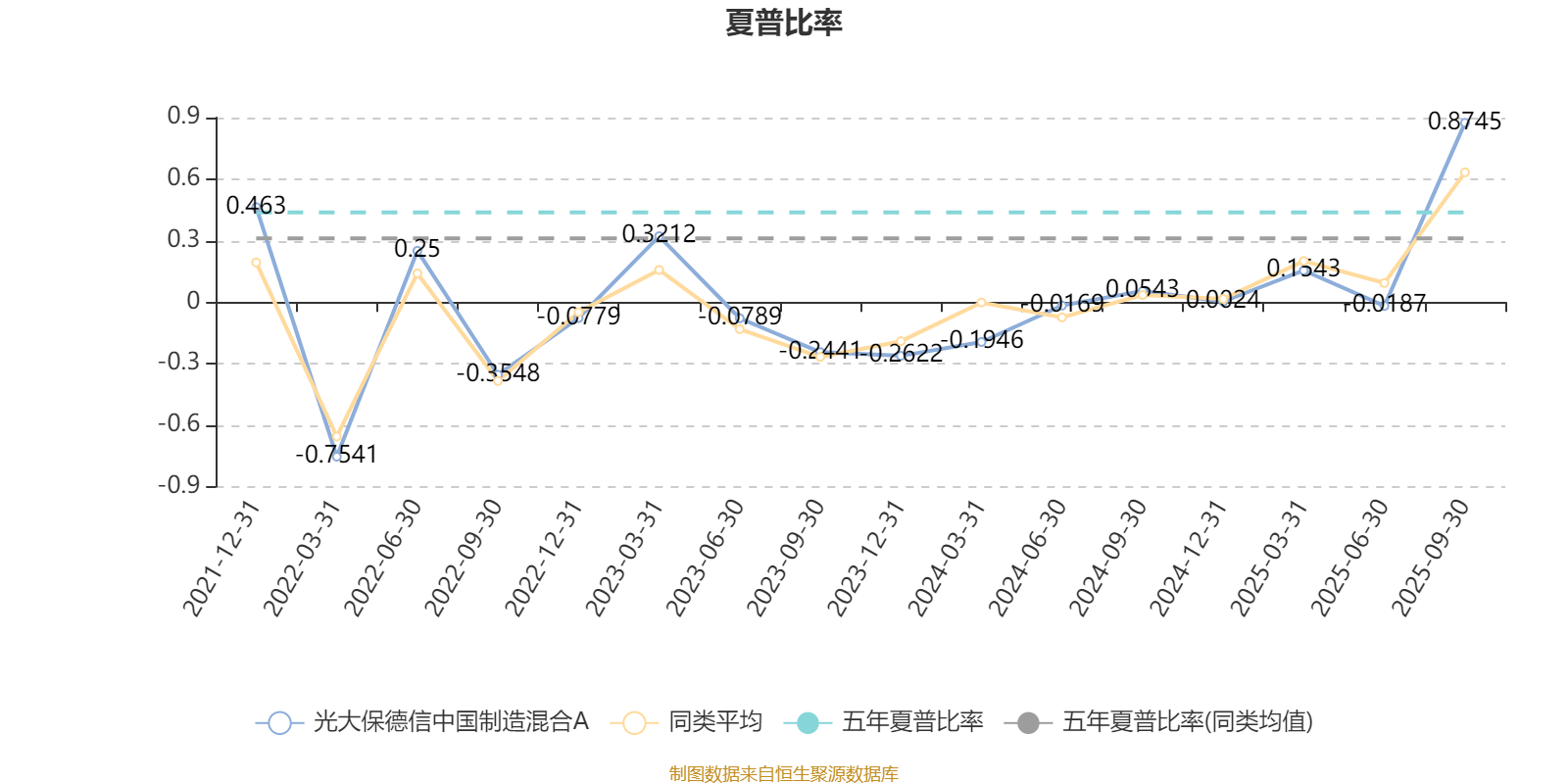 截至9月30日,基金近三年夏普比率为0.5583,位于同类可比基金605/1285。