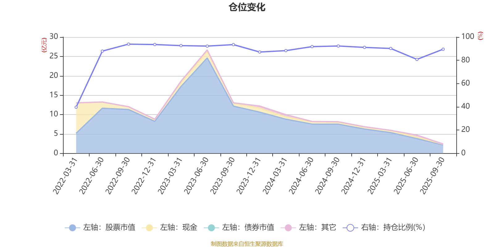 据定期报告数据统计,近三年平均股票仓位为90.26%,同类平均为86.94%。2022年三季度末基金达到93.92%的最高仓位,2022年一季度末最低,为39.64%。