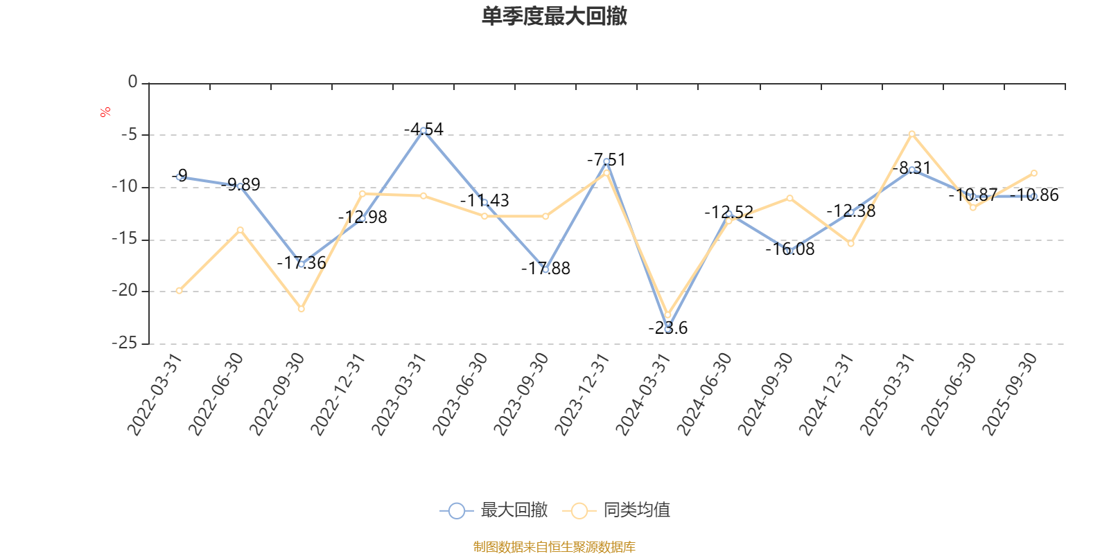 截至10月27日,基金近三年最大回撤为40.76%,同类可比基金排名45/75。单季度最大回撤出现在2024年一季度,为23.6%。