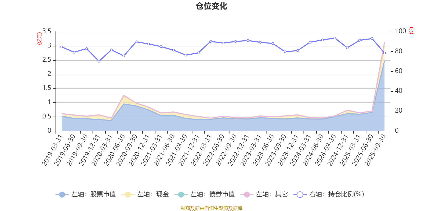 据定期报告数据统计,近三年平均股票仓位为87.51%,同类平均为72.17%。2024年三季度末基金达到93.58%的最高仓位,2019年末最低,为70.21%。