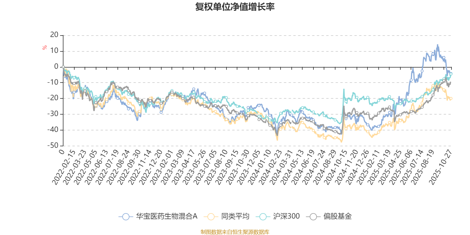 截至10月27日,华宝医药生物混合A近三个月复权单位净值增长率为-7.37%,位于同类可比基金86/106;近半年复权单位净值增长率为22.43%,位于同类可比基金48/104;近一年复权单位净值增长率为39.18%,位于同类可比基金26/101;近三年复权单位净值增长率为26.16%,位于同类可比基金16/75。