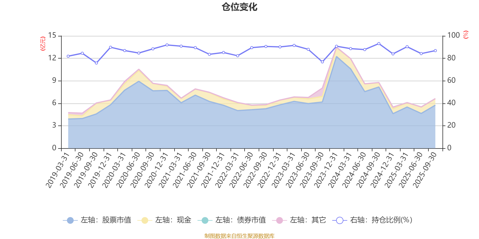 据定期报告数据统计,近三年平均股票仓位为87.69%,同类平均为86.87%。2024年三季度末基金达到93.12%的最高仓位,2019年三季度末最低,为75.85%。