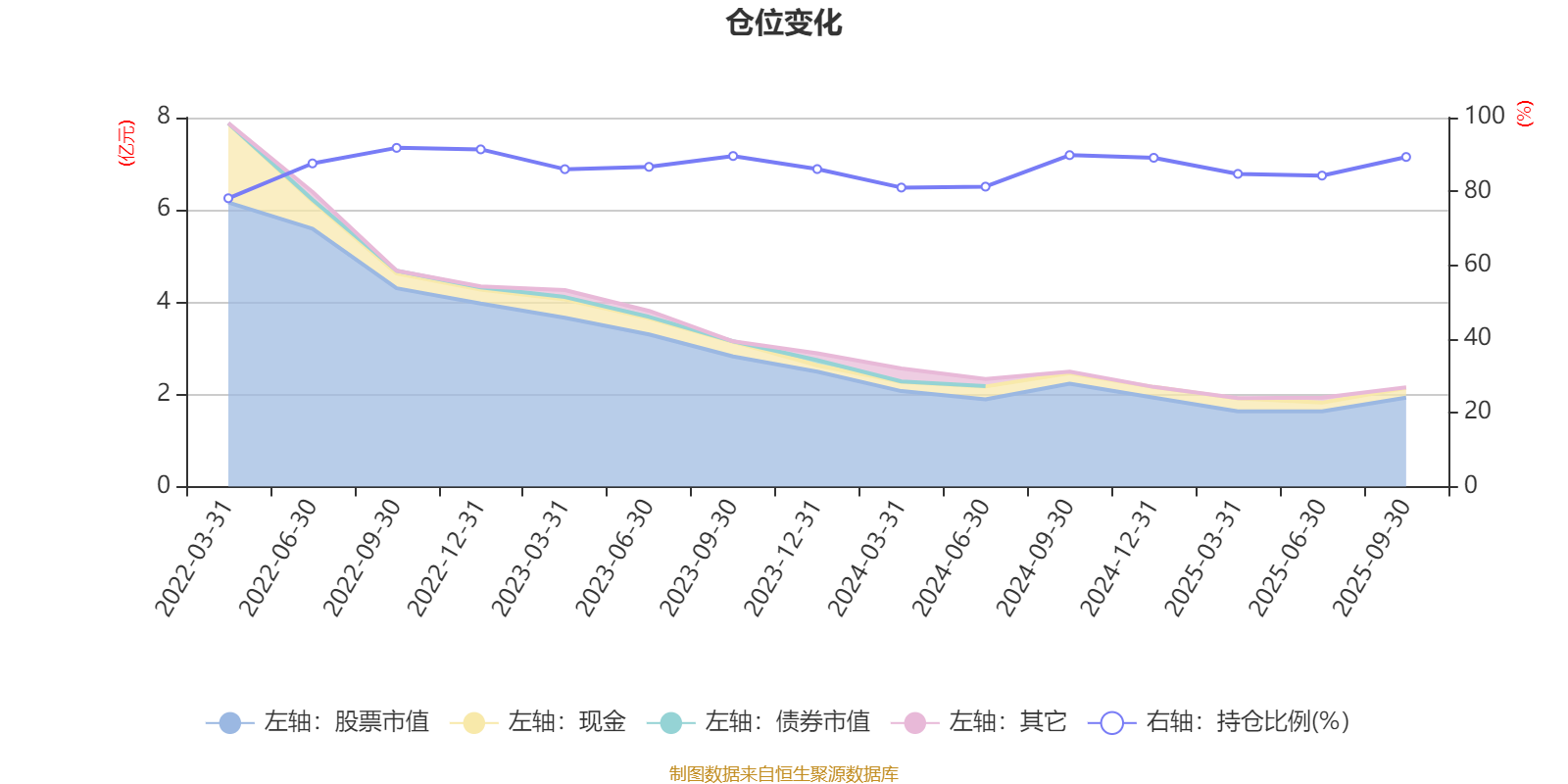 据定期报告数据统计,近三年平均股票仓位为86.61%,同类平均为72.17%。2022年三季度末基金达到91.8%的最高仓位,2022年一季度末最低,为78.14%。