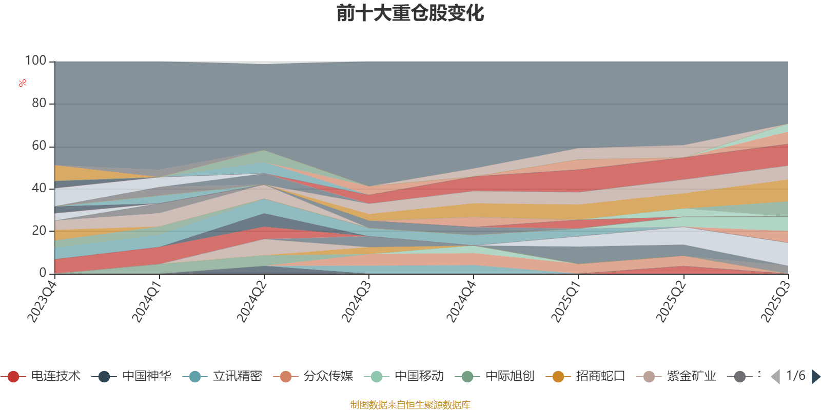 截至2025年三季度末,基金十大重仓股分别是ST华通、歌尔股份、理想汽车-W、圆通速递、苑东生物、沪电股份、阿里巴巴-W、生益科技、上海洗霸、宇瞳光学。