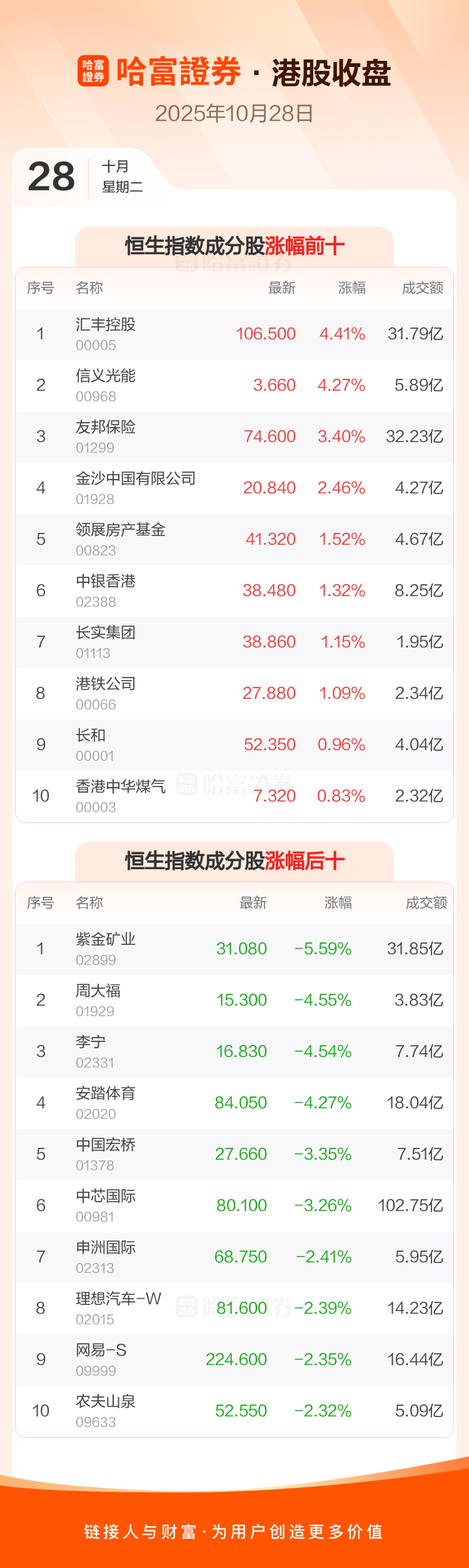港股收盘:恒指跌0.33% 紫金矿业领跌成分股