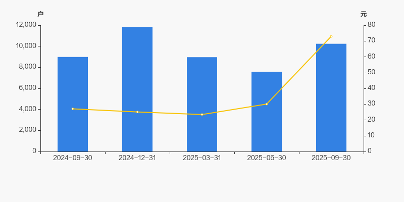截至2025年9月30日,公司最新总股本为1.09亿股,其中流通股本为1.08亿股。户均持有流通股数量由上期的1.43万股下降至1.06万股,户均流通市值77.23万元。