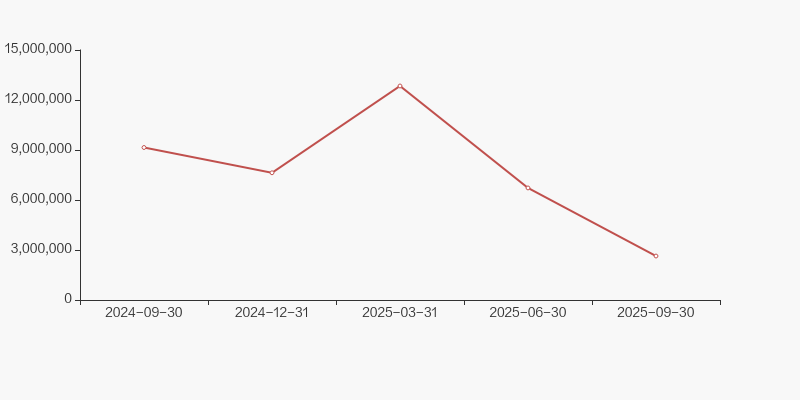 截至2025年9月30日,公司最新流通股本为5.73亿股。户均持有流通股数量由上期的3.69万股下降至3.67万股,户均流通市值83万元。