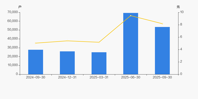 2024年9月30日至今,公司股东户数显著大幅增长,区间涨幅达92.94%。2024年9月30日至2025年9月30日区间股价上涨62.28%。