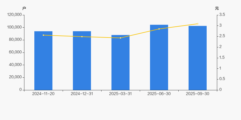 2024年11月20日至今,公司股东户数有所增长,区间涨幅为9.09%。2024年11月20日至2025年9月30日区间股价上涨20.70%。