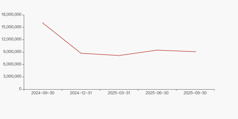 自2024年12月31日以来,公司股东户数连续3期下降,截至目前减幅为8.77%。2024年12月31日至2025年9月30日区间股价下降2.15%。