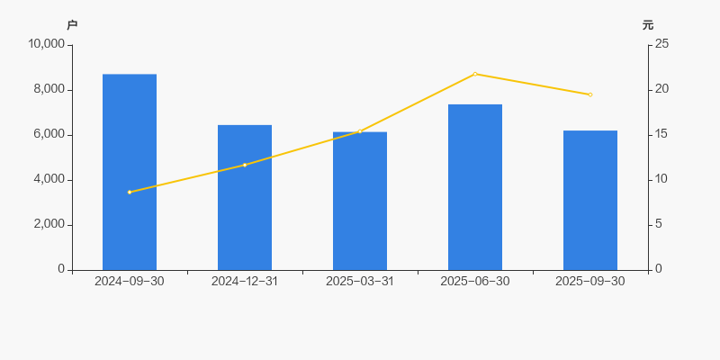 截至2025年9月30日,公司最新总股本为6004.27万股,其中流通股本为3634.8万股。户均持有流通股数量由上期的4937股上升至5866股,户均流通市值11.43万元。