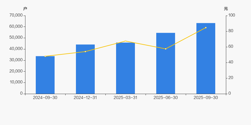2024年9月30日至今,公司股东户数显著大幅增长,区间涨幅达87.99%。2024年9月30日至2025年9月30日区间股价上涨76.40%。