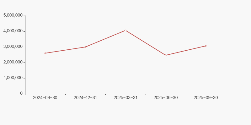 截至2025年9月30日,公司最新总股本为5.13亿股,其中流通股本为5.06亿股。户均持有流通股数量由上期的3.28万股上升至3.7万股,户均流通市值46.59万元。