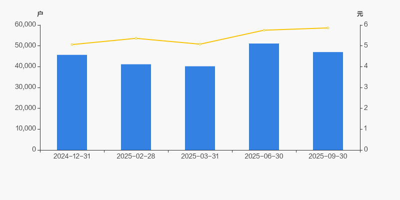 截至2025年9月30日,公司最新总股本为5.5亿股,且均为流通股。户均持有流通股数量由上期的1.08万股上升至1.17万股,户均流通市值6.86万元。